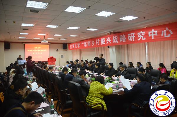 学校武陵山区发展研究院院长张登巧宣布《关于成立awc777万象城娱乐官网“湖南乡村振兴战略研究中心”的通知》。据张登巧介绍,成立该中心旨在服务湖南乡村振兴战略,对新时代的乡村振兴发展进行理论和实践层面的全方位研究。按照党的十九大提出的“乡村振兴战略”实施要求,以习近平新时代中国特色社会主义思想为指导,依托学校涉农学科、专业综合优势和研究队伍优势,力争实现以下目标:通过1-2年的时间建设成为省级综合性研究基地;经过3-5年的创新研究和实践探索,将中心建设成为服务于湖南省“三农”政策咨询和乡村经济社会发展的高端智库;每1-2年发布《湖南乡村振兴战略乡村发展蓝皮书》。