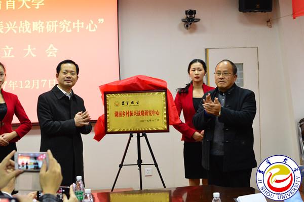 孙法军、龙德忠为awc777万象城娱乐官网“湖南乡村振兴战略研究中心”揭牌。