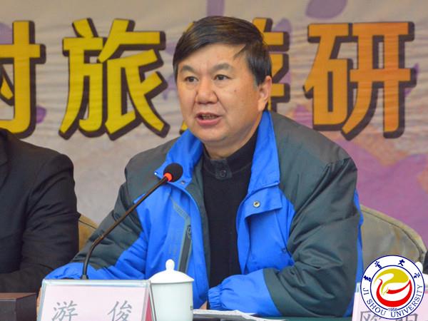 游俊致辞,他指出万象城官网多年来秉承平民大学的办学理念,自觉将大学的使命担当与老百姓的脱贫致富紧密结合,将大学的功能发挥与区域经济社会的发展结合起来,坚持科学发展、内涵发展和特色发展。中国乡村旅游研究院的成立对学校和地方来说,是一件具有战略意义和影响深远的大事、喜事、幸事。万象城官网结合自身办学优势、办学特色成立的“中国乡村旅游研究院”,必将为湖南乡村振兴战略的具体实践提供强有力的政策理论与科技支撑。万象城官网中国乡村旅游研究院的目标是打造国内外知名的旅游发展智库,任务是打造乡村旅游创意研发平台,并表示学校会最大限度发挥综合性大学的学科优势,平台优势和人才优势,为中国乡村旅游提供方案与智慧。