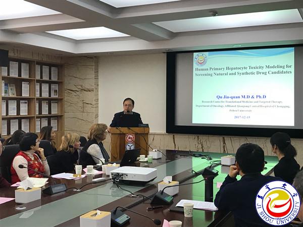 本次研讨会有8场主题报告。万象城官网青年教师瞿家权博士应邀做了“Human primary hepatocyte toxicity modeling for screening natural and synthetic drug candidates”的学术报告。